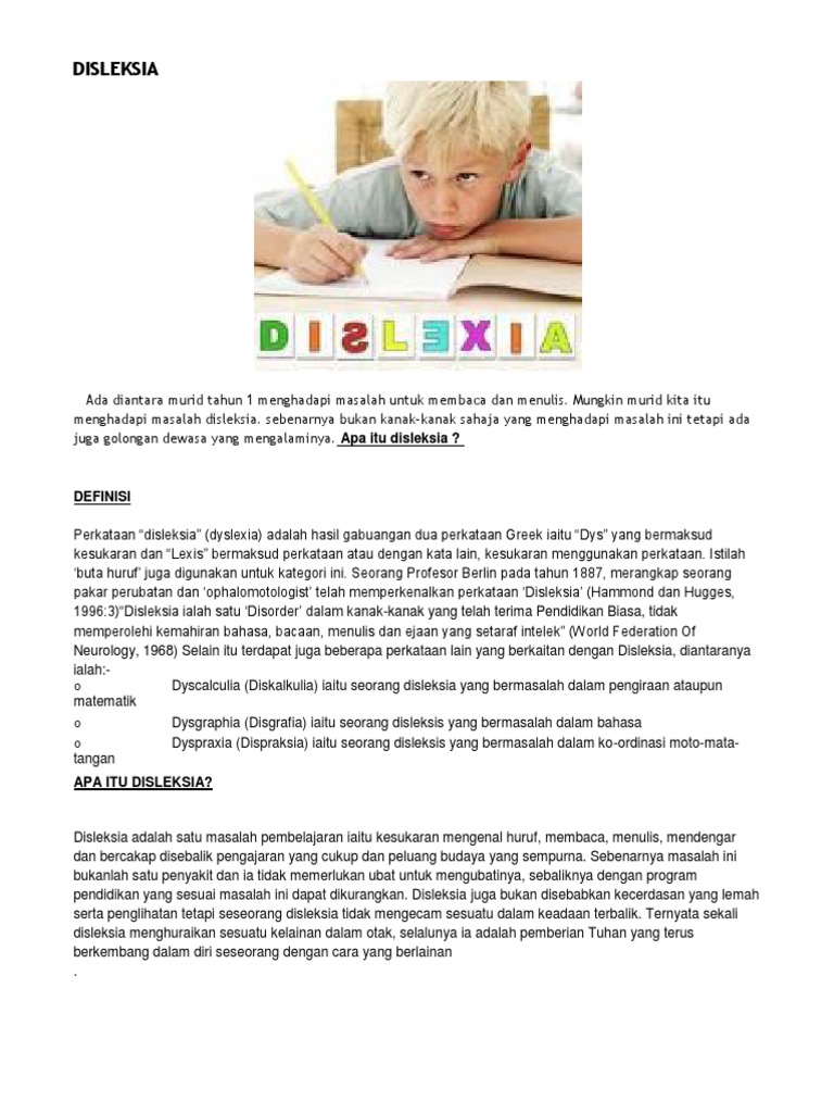 Ciri Ciri Disleksia / Selain itu anak yang mengidap disleksia.